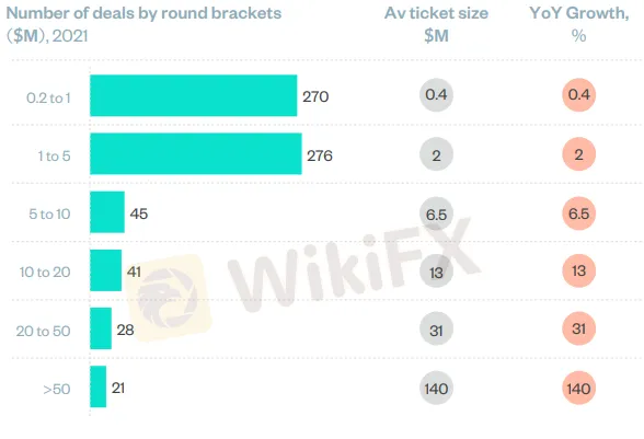 Over 600 deals in this bracket compared to less than 150 in higher brackets 1-5million round experienced the fastest growth compared to all brackets (142%)1.