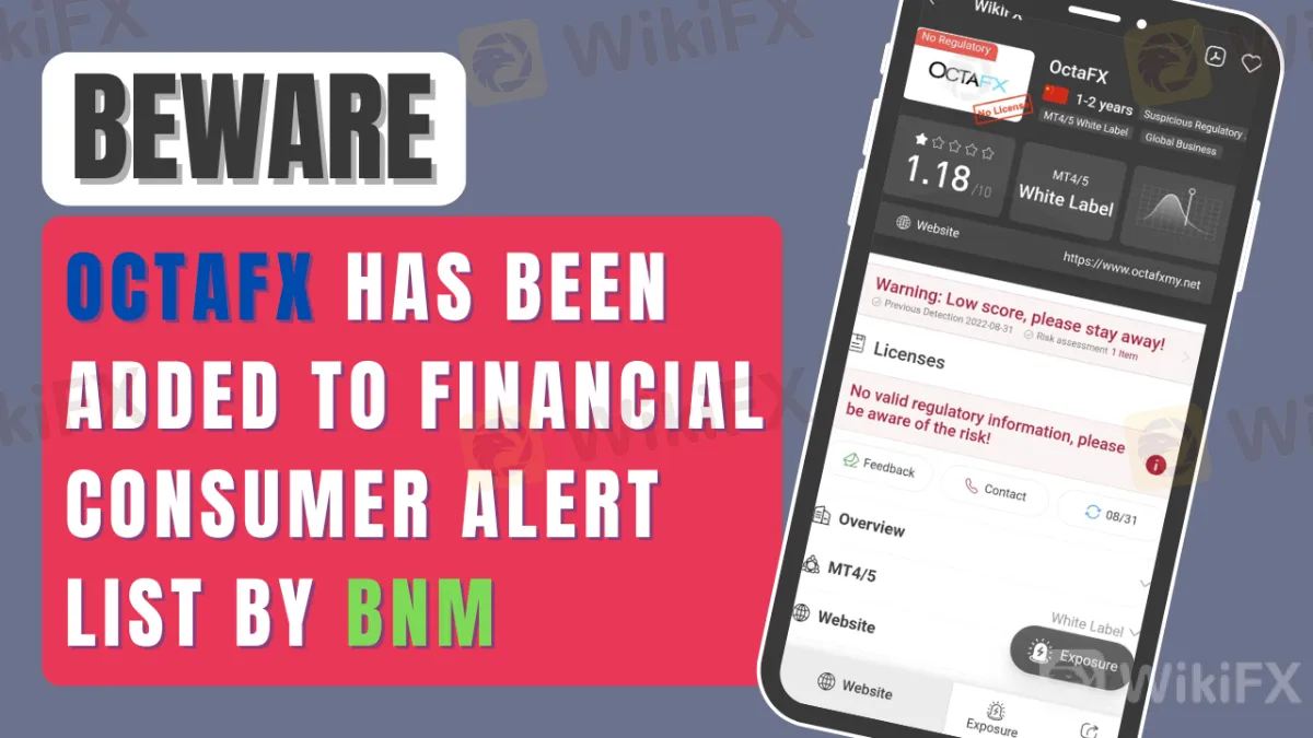 Aside from BNM, OctaFX was previously listed to the Securities Commission Malaysia's (SC) Investor Alert List. It was listed on the grounds that the platform had engaged in capital market operations such as trading in derivatives without a license and running a recognized market without SC authorisation.