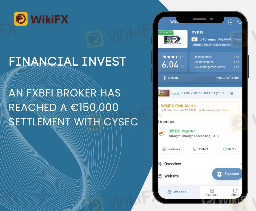 The Cyprus Securities and Exchange Commission (CySEC) announced today a settlement of €150,000 with FXBFI Broker Financial Invest. The company is accessible via two authorized domains: www.fxbfi.com and www.101investing.com.