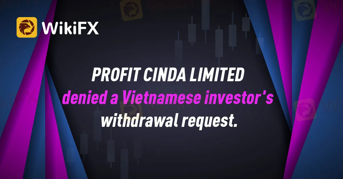 A Vietnamese trader recently exposed to WikiFX that PROFIT CINDA LIMITED blocked his account and rejected his withdrawal request. The victim now has lost more than 6,000 US dollars because of this broker. The victim already called the police and also ask WikiFX for assistance.