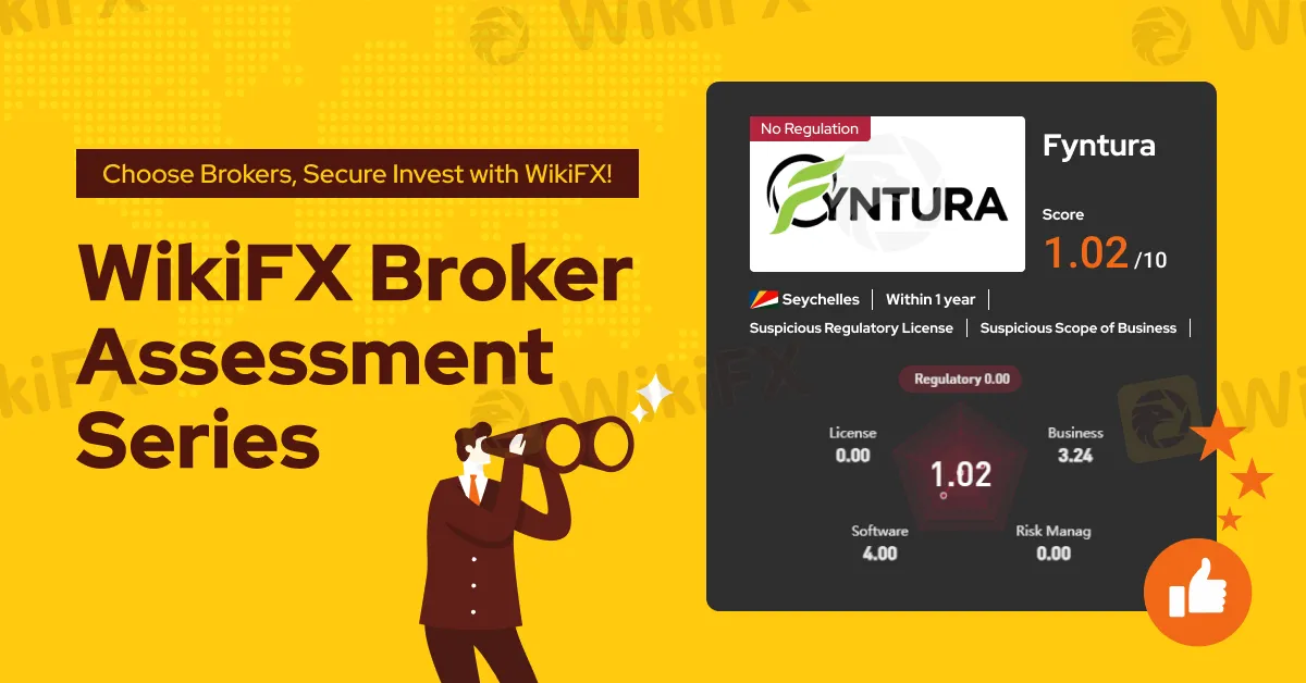 WikiFX, a global forex broker regulatory platform, assigns Fyntura a low WikiScore of 1.02 out of 10, indicating a broker with a high level of underlying risk within the online trading industry.