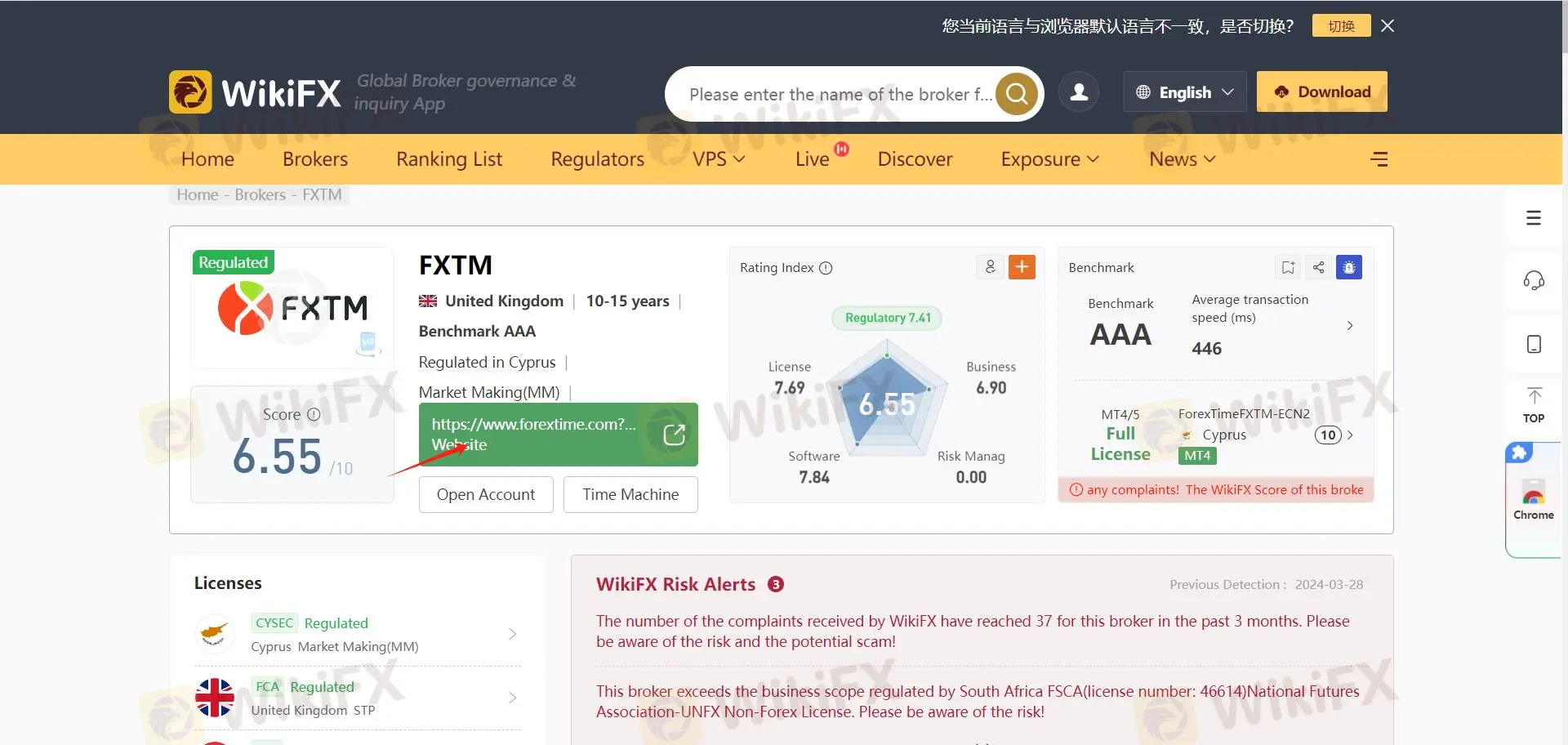 Locate FXTM on WikiFX and click the official website address.