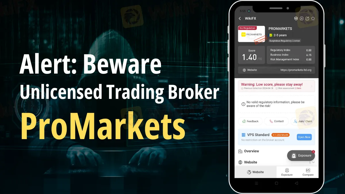 Lack of Regulation: ProMarkets operates without a formal license, thus it is not subject to regulatory control that protects investors from fraudulent activity.