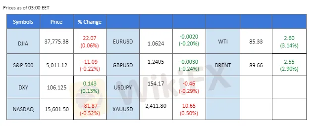 Gold prices remained flat as upbeat US economic data and a lack of progress updates from the Middle East diminished the appeal of safe-haven assets. The surge in US Treasury yields following the positive economic indicators reduced demand for non-yield assets like gold. Amid ongoing geopolitical tensions, investors remained vigilant for developments that could influence gold's trajectory.