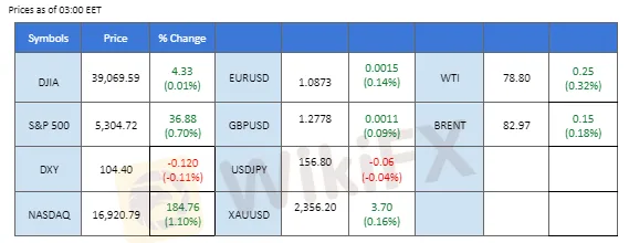 The market saw muted activity as both the U.S. and the U.K. observed public holidays in yesterday's session. The dollar index (DXY) edged lower, failing to hold above the 104.50 level. This decline comes as the market anticipates signs of cooling U.S. inflation ahead of the PCE reading due on Friday. Meanwhile, the U.S. Securities and Exchange Commission (SEC) announced a reduction in Wall Street settlement times, aiming to complete transactions in a single day. This move is expected to mitigate potential financial risks, enhance market liquidity, and potentially boost the U.S. equity market when trading resumes on Tuesday.