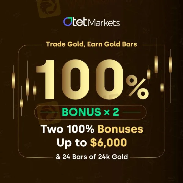 At Otet Markets, you can trade gold for 24 days and have a shot at winning 24-karat gold bars. All you need is a minimum deposit of $200 to join the fun. Additionally, you have the chance to receive two 100% bonuses. This means your initial deposit will be doubled right away. Then, halfway through the challenge, you can get another 100% bonus by making a new deposit, up to $3000.
