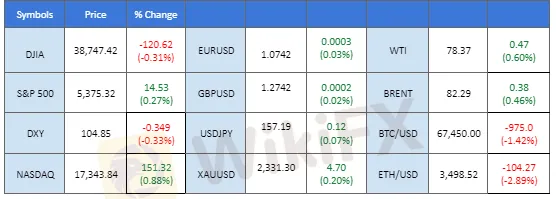 In the commodity market, gold prices eked out marginal gains, remaining subdued near the $2300 level. Oil prices were encouraged by an upbeat U.S. weekly crude report and optimistic projections from the OPEC+ monthly report, suggesting that oil demand will pick up later in the year.