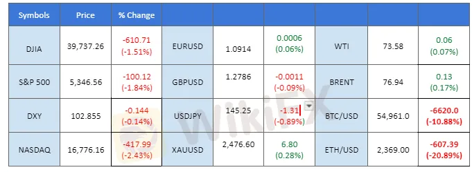 Abstract:The aftermath of the Japanese yen's strengthening has manifested in significant dips across multiple markets, including equities, commodities, and various currencies. The yen has erased all its 2024 losses against the dollar, moving towards the 145.00 mark. The dollar index (DXY) has fallen to its lowest level since March, hovering above the $103 mark.