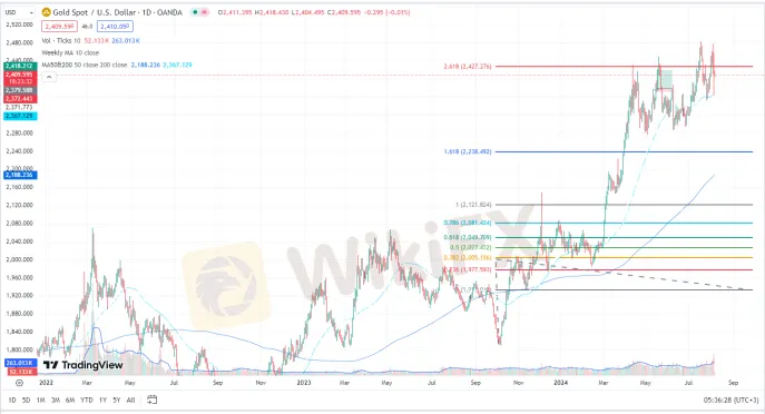 Gold price edges higher and moves away from a one-week low touched on Monday. Bets for a 50-bps Fed rate cut in September and geopolitical risks lend some support. A turnaround in the global risk sentiment and rebounding US bond yields could cap gains. Risk aversion hit hard financial markets at the beginning of the week, triggering volatile movements across all boards. XAU/USD plummeted to $2,364.19 ahead of Wall Streets opening, bouncing afterwards to trade around the $2,400 mark at the time of writing, still sharply down on the day. The US Dollar surged against the battered bright metal as concerns about the United States (US) economic performance and escalating tensions in the Middle East put markets in panic mode.
