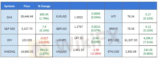 Abstract:The financial markets reacted positively to the upbeat Initial Jobless Claims data released yesterday, which came in at 233k, lower than market expectations. This eased concerns about a weakening labour market and the heightened recession risks that emerged after last Friday's disappointing NFP report. Wall Street benefited from the improved risk appetite, with the Nasdaq leading gains, surging by over 400 points in the last session.
