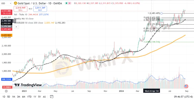 Spot Gold retains its bullish bias at the beginning of the week, extending Fridays gains towards the record high posted last week at $2,531.60. The US Dollar trades mixed across the FX board but was overall weak after Federal Reserve (Fed) Chairman Jerome Powell said that the time has come for monetary policy to adjust, speaking at the Jackson Hole Symposium. Once again, Powell conditioned an interest rate cut to incoming data, but market participants are confident the Fed will deliver a rate cut in the upcoming September meeting.