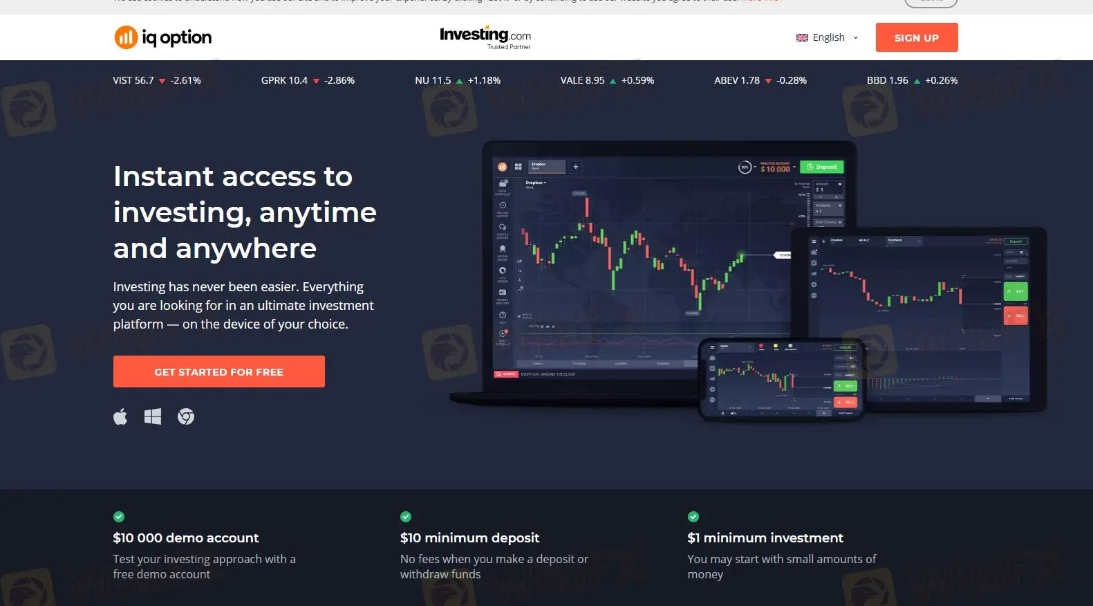 The platform is known for its user-friendly interface, extensive educational resources, and low entry barriers for new traders. It offers a range of trading tools and features, including customizable charts, technical analysis indicators, and a range of order types, such as stop-loss and take-profit orders. Additionally, IQ Option offers a range of account types, including a free demo account for practice trading, as well as real accounts with different features and benefits.