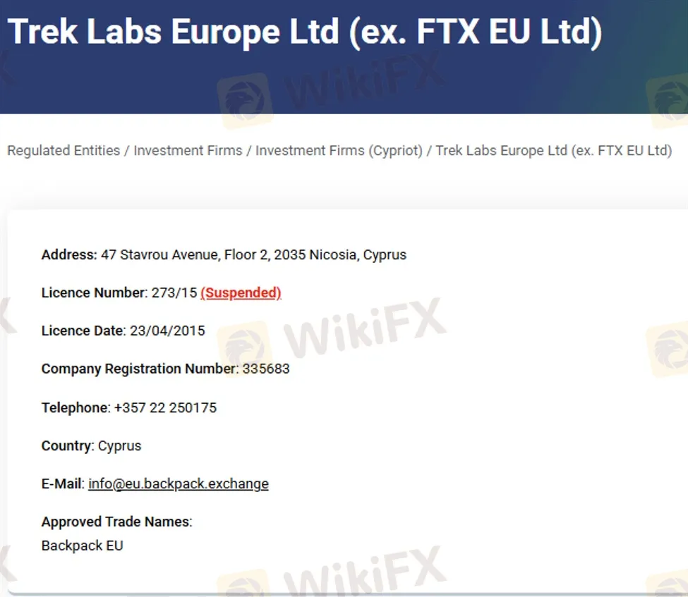 Although the Cyprus Securities and Exchange Commission (CySEC) settled with Trek Labs Europe, it highlighted that the possible operational violations occurred before the change of name and shareholding structure. Specifically, the settlement was based on the companys compliance assessment between March 2022 and mid-November 2022, when the crypto exchange collapsed.