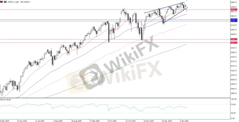 From a technical perspective, the S&P 500's previous Rising Wedge formation has exerted clear pressure on the upside, signaling that bullish momentum is exhausting at these record levels. Following the index's break below the 6,900 key level, the short-term outlook has turned cautious as downside correction risks increase.