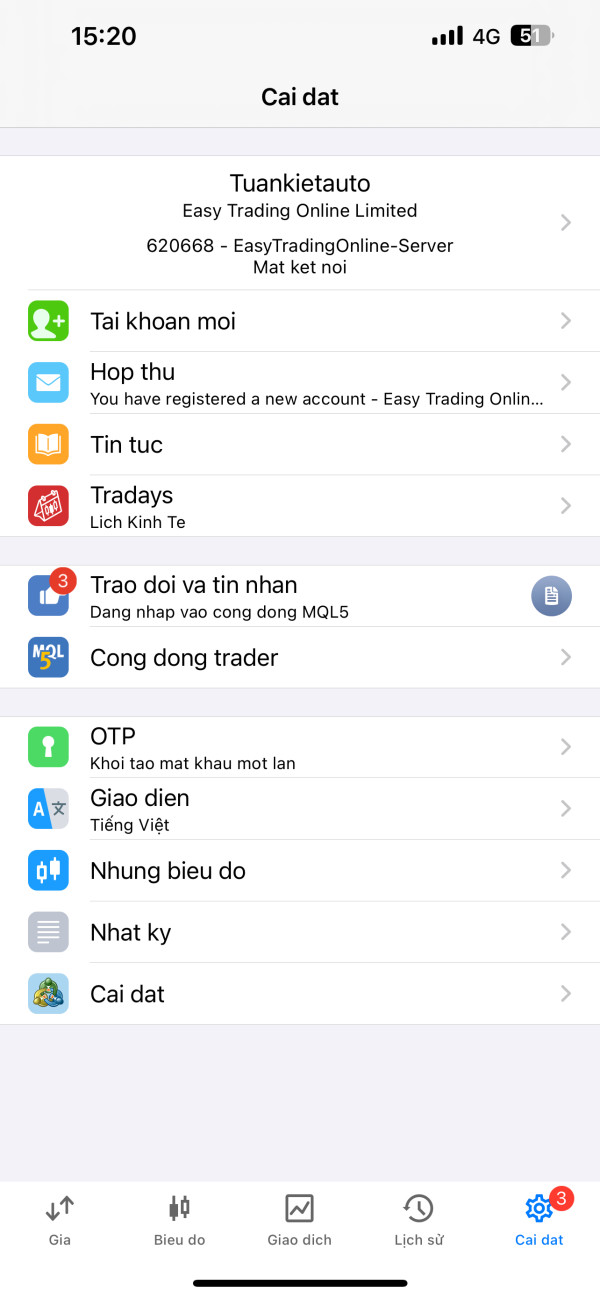 Tôi tham gia vào easy và theo hình thức copytrade 1 master trên sàn, bản thân tôi không biết người đó giao dịch như thế nào, tôi thấy lợi nhuận cao nên follow theo, trong quá trình đó, sàn và master có xảy ra vấn đề gì đó, tôi không biết, nhưng sàn đã khoá tài khoản master và khoá hết tài khoản của tôi, không chỉ được phép rút vốn, không rút lãi, sàn chặn tôi đăng nhập Bản thân sàn và master có gì không phải việc của tôi, tôi phải được đảm bảo quyền lợi về tiền và vốn của mình, tôi không sai và tôi yêu cầu sàn easy phải trả tiền toàn bộ cho tôi trên các tài khoản mt5 của tôi Hình ảnh đại diện sàn trên đây, yêu cầu được rút tiền