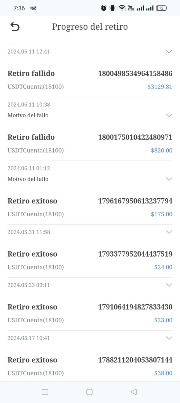 No permite retirar fondos