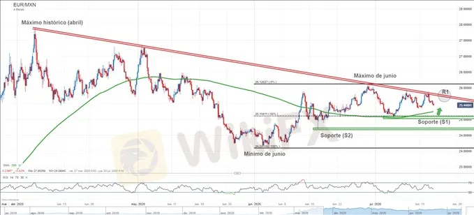 Extracto:COTIZACIÓN PESO MEXICANO HOY: Las noticias de una posible vacuna contra el coronavirus refuerzan al peso mexicano y a los activos de riesgo. El EUR/MXN pierde terreno, pero su estructura técnica sigue siendo alcista En este artículo presentamos una estrategia de compra en el EURMXN.