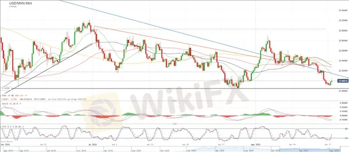 USD/MXN rompe por debajo de la línea de tendencia bajista