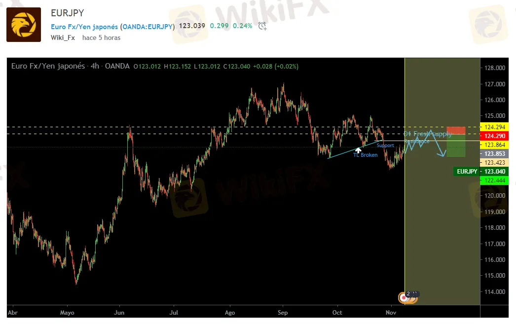 en zona de liquidez entre el punto 123.864 - 124.294 para entrar en VENTA