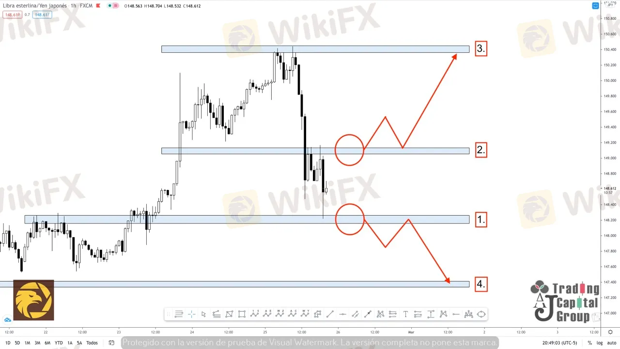 Las zonas (1) y (2) se consolidan como fuertes niveles de soporte y resistencia que pueden llevar al precio a crear patrones adecuados de participación alcista o bajista.