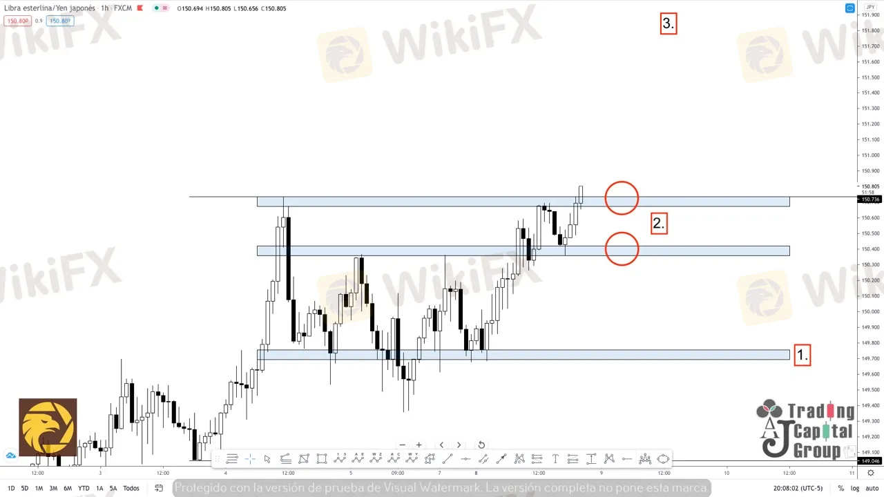 3. Siguiente zona de llegada del precio de continuar con el rally alcista que lleva. La zona de los 152.000 no ha sido tocada desde abril de 2018. Ademas de tener una zona libre de trafico de velas que le permita llegar sin mayores contratiempos.