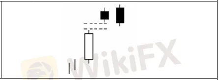 El segundo día se forma una vela negra pequeña después de haber formado un gap al alza con respecto a la vela del primer día.
