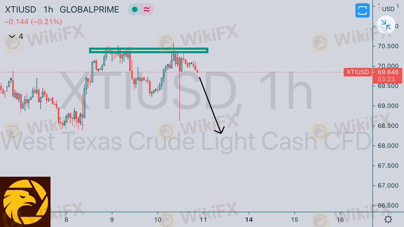 WTI o petróleo west texas luego de alcanzar su Máximo pico anual el precio corrige y hace un doble techo sumado a las noticias de podruccion en la OPEP podemos buscar ventas a partir del precio 69.500