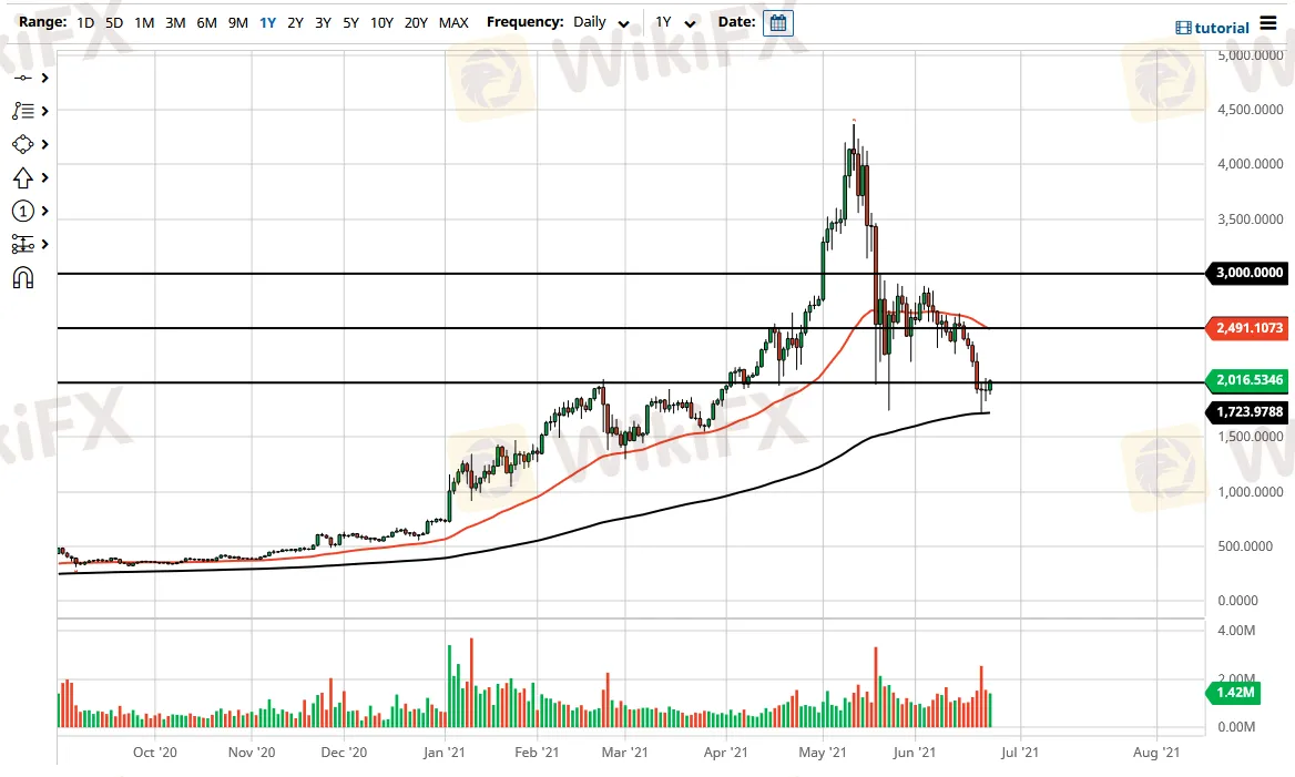 Ethereum ha repuntado desde la EMA de 200 días también, cerca de la región de $1725. Las criptodivisas tienden a ser muy impulsadas técnicamente, por lo que esto no debería ser una gran sorpresa, pero todavía soy un poco cauteloso acerca de ponerse largo en este mercado ahora mismo, ya que habíamos hecho un “mínimo inferior” en el mercado cuando tocamos esa EMA de 200 días. Habiendo dicho esto, creo que el Ethereum posiblemente tenga mucha más probabilidades de ver presión bullish que el Bitcoin, porque sinceramente el Ethereum tiene mucho más uso.