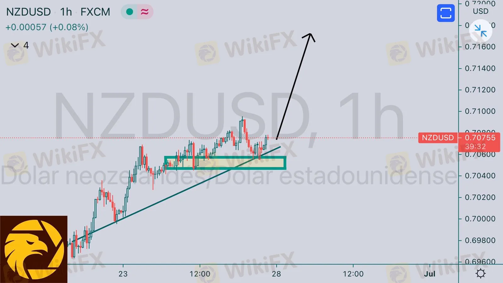 NZDUSD el precio viene en una línea de tendencia alcista y luego de un pullback correctivo estamos en un soporte lateral y soporte horizontal así que podemos buscar compras a partir del precio 0.70800