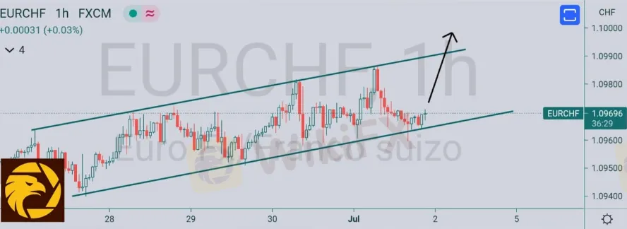 EURCHF el precio se encuentra en canal alcista como podemos ver ha venido respetando cada punto así que podemos buscar compras a partir del precio 1.09696
