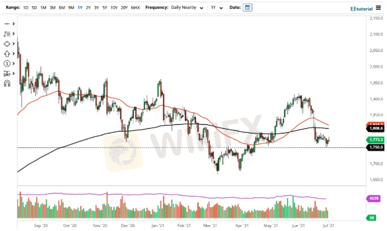 La única cosa con la que pienso que se puede contar es con un comportamiento muy agitado y, por supuesto la cifra de empleo que se publicará el viernes tendrá una enorme influencia en lo que suceda a continuación, no sólo con el Dólar Estadounidense, sino también por extensión, con los mercados del Oro. Hay que prestar atención también a los bonos, porque si el dinero empieza a fluir hacia los bonos, eso podría quitarle algo de brillo al propio Oro. En mi opinión, lo más habitual es que la sesión sea lateral, ya que el sábado se celebra el Día de la Independencia y es previsible que los traders se alejen de sus terminales a primera hora de la sesión.
