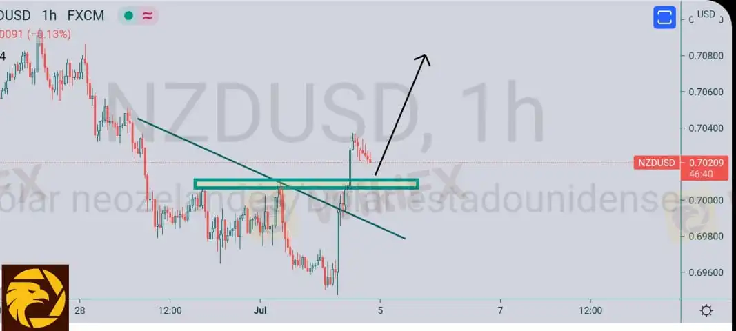 NZDUSD el precio rompe la tendencia bajista y se va al alza además retrocede al soporte dejándonos claro su dirección alcista así que podemos buscar compras a partir del precio 0.70300