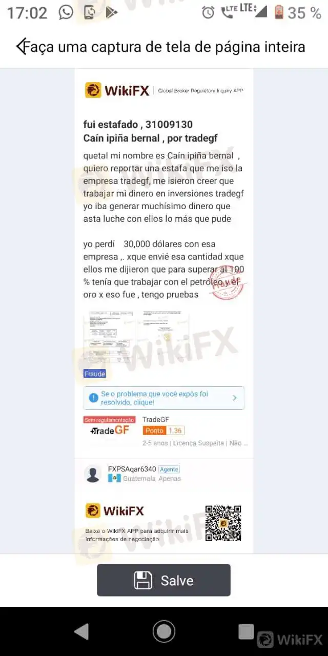 Un joven que cae en las garras inescrupulosas de TradeGF que está 100% comprobado en nuestra plataforma que son un fraude total y ahora estafaron a este joven por la suma de $30.000.