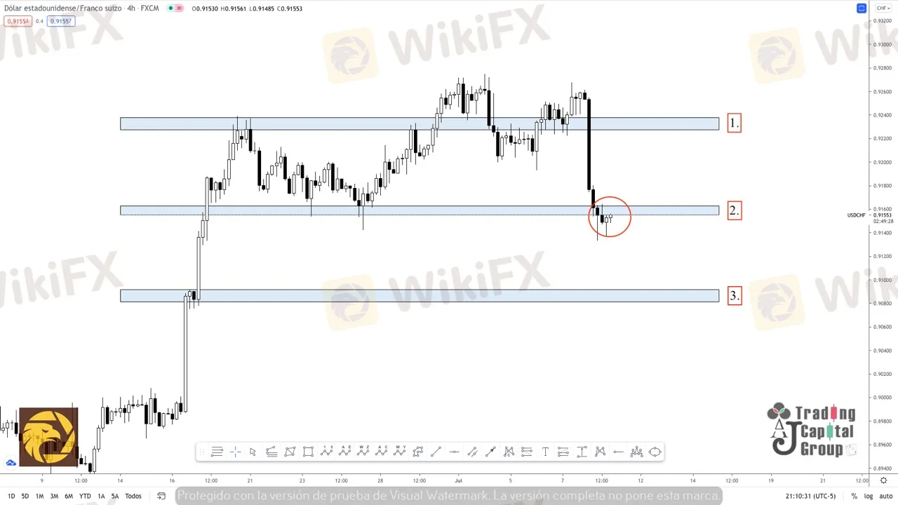 3. Como zona final del rally bajista, este nivel podría establecerse como punto principal de ganancia, haciendo una entrada por debajo de la zona (2)