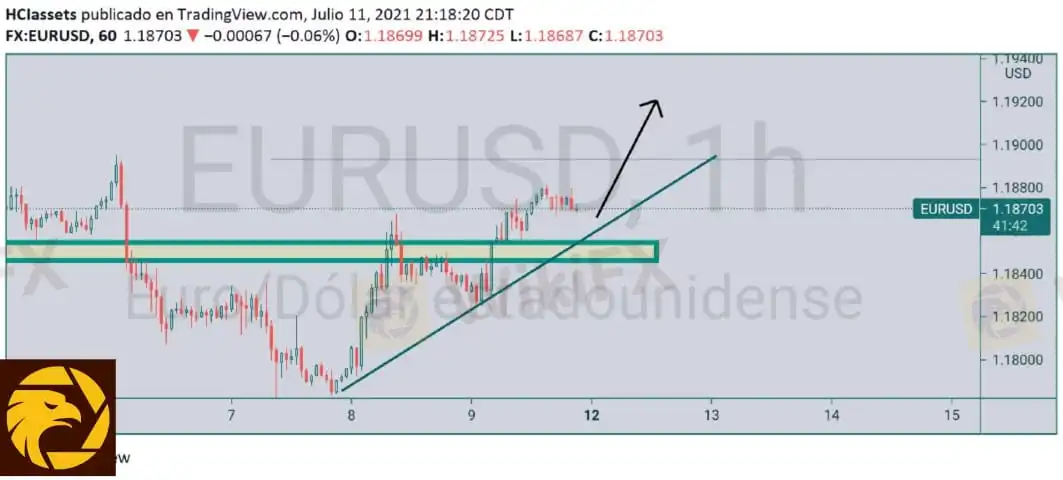 EURUSD precio recuperando zonas claves ya superó la resistencia y ahora soporte esperamos una buena ruptura para tomar compras a partir del precio 1.18750