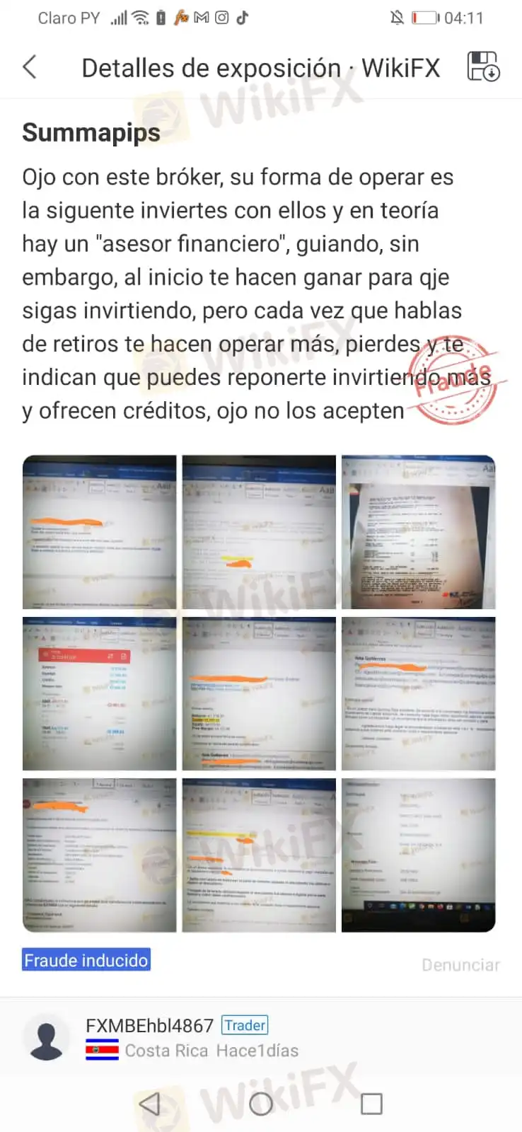 Todo comienza cuando la victima proveniente de Costa Rica se topa en Internet con el broker llamado Summa Pips por Google, al estar interesada en invertir su dinero ahoorado un supuesto asesor financiero se comunica con ella y le comenta sobre todo el tema.