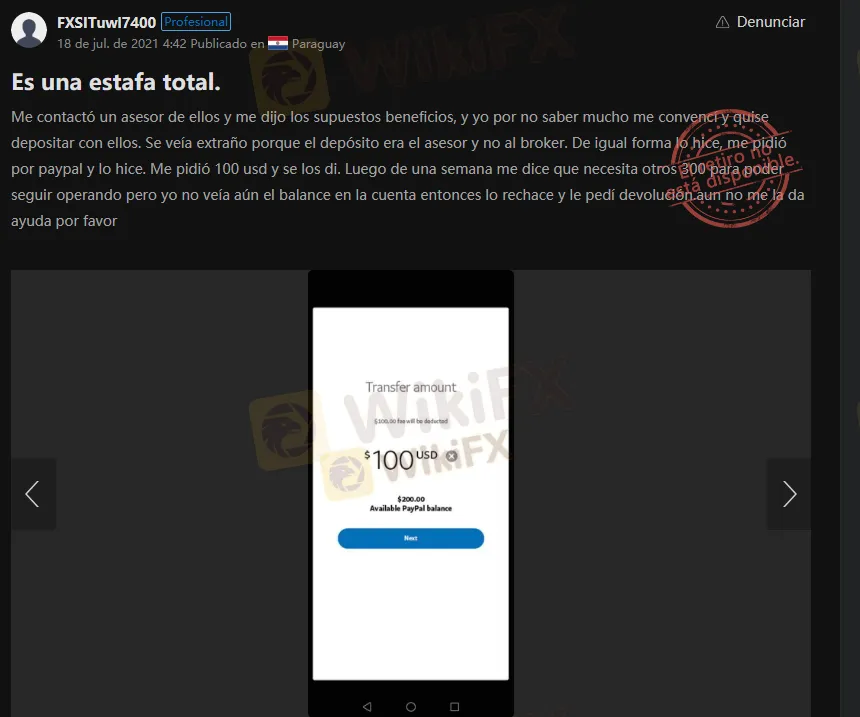 En WikiFx recomendamos no tratar ni invertir con brokers fraudulentos y no regulados para prevenir casos de estafa como estos.
