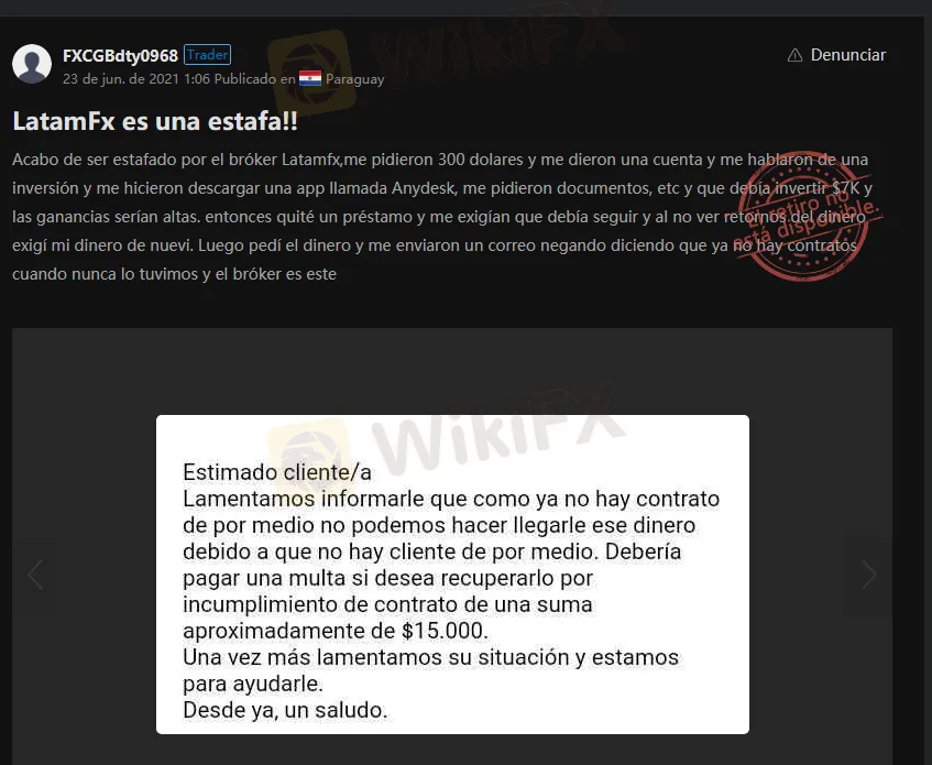 En WikiFx recomendamos no tratar ni invertir con brokers fraudulentos y no regulados para prevenir casos de estafa como estos