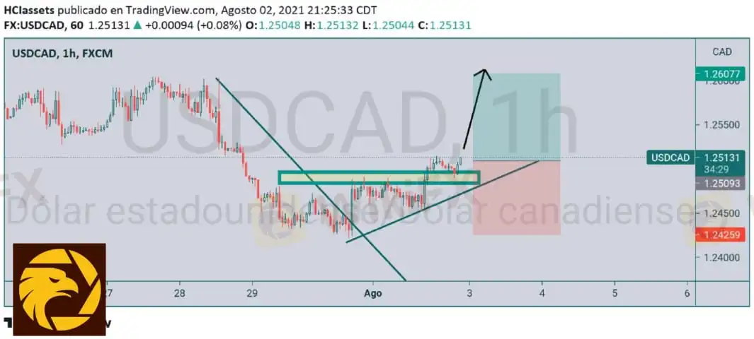 USDCAD el precio claramente va a experimentar una subida debido al espacio en el gráfico disponible sin zonas de resistencia además hay una micro tendencia alcista así que es momento de buscar compras a partir del precio 1.25300
