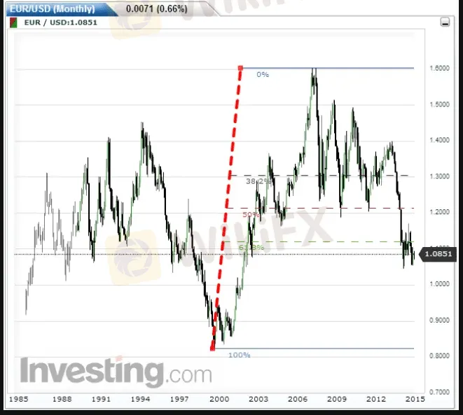 EURUSD Cuadrícula histórica de Fibonacci