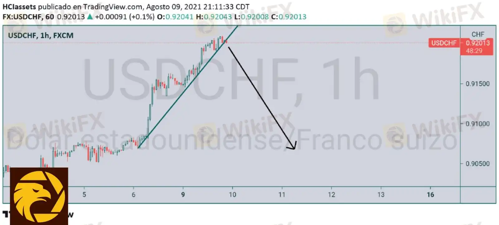 USDCFH es momento de corregir el sprint alcista pierde fuerza y rompe la línea de tendencia intraday así que podemos buscar ventas a partir del precio 0.91913