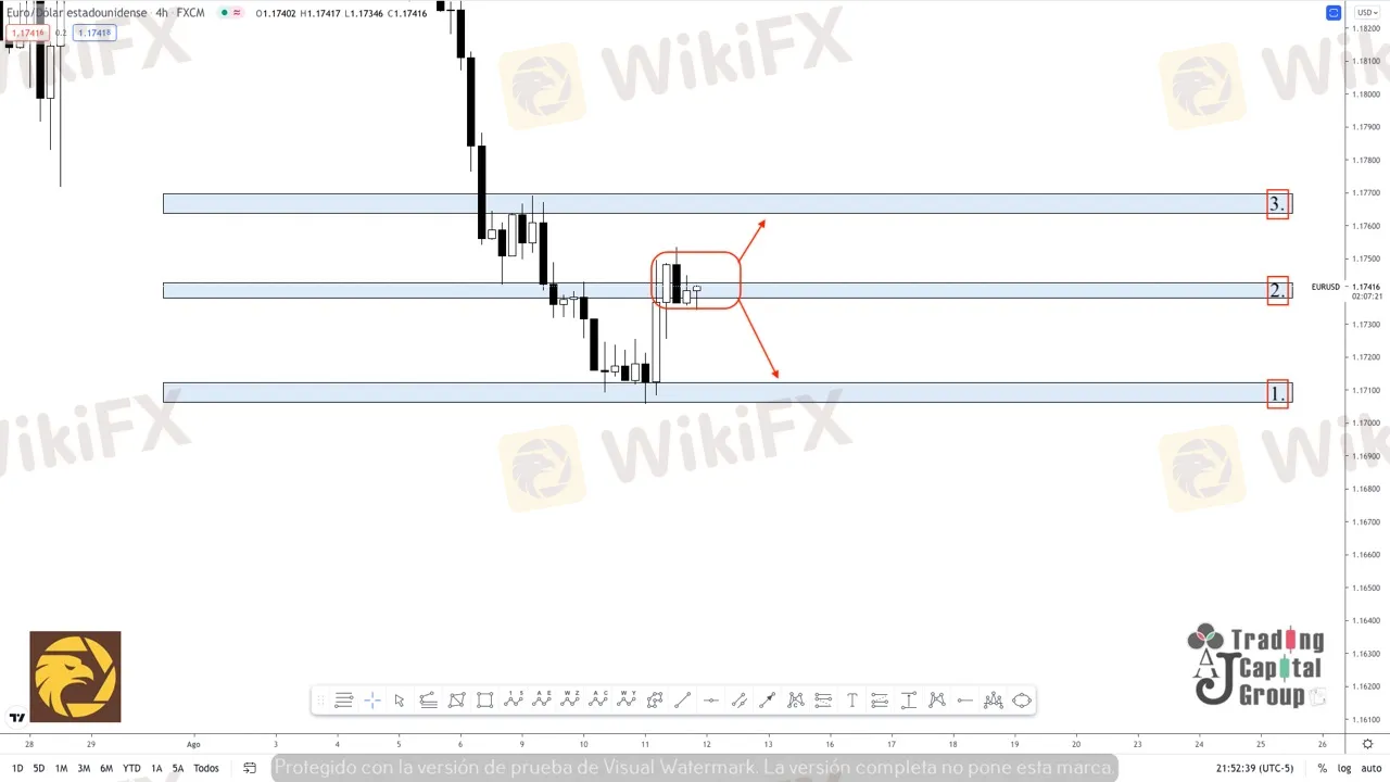 1. En esta zona se encuentra en un punto de participación bajista, que puede buscar un movimiento correctivo, del impulso general, siempre y cuando rompa con fuerza la zona de los 1.17400.