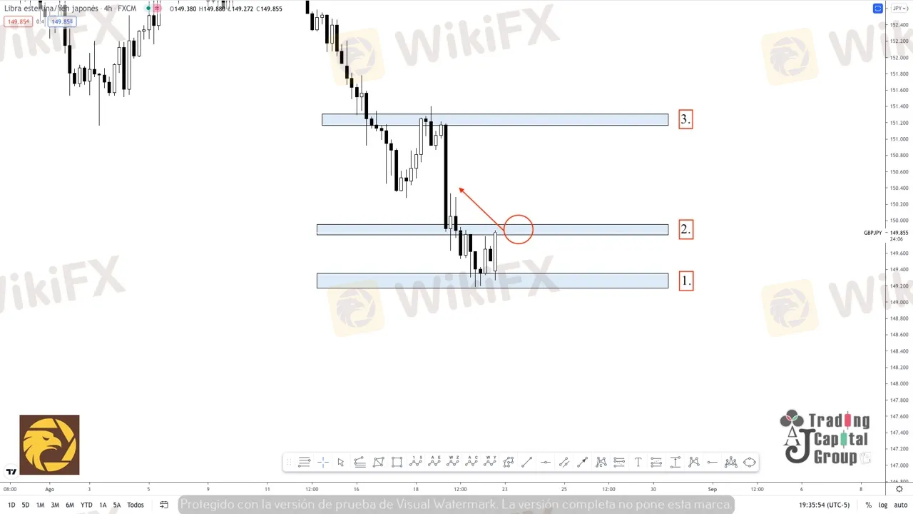 2. Esta zona se consolida como un primer punto de acción del precio, para determinar si el precio continua su movimiento en compra o si por el contrario busca realizar una corrección dentro del movimiento general.