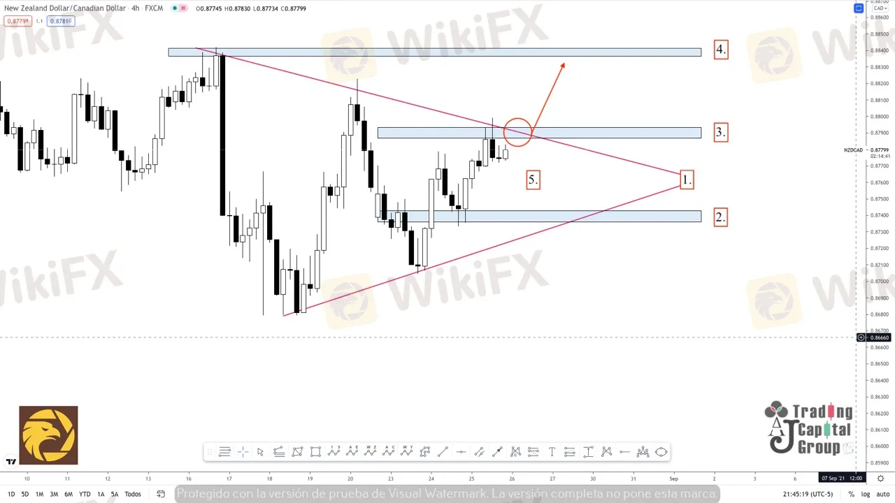 4. Al ser el ultimo rango de distribución, los 0.88400 podrían consolidarse como el punto de llegada del precio ante un posible rally alcista.