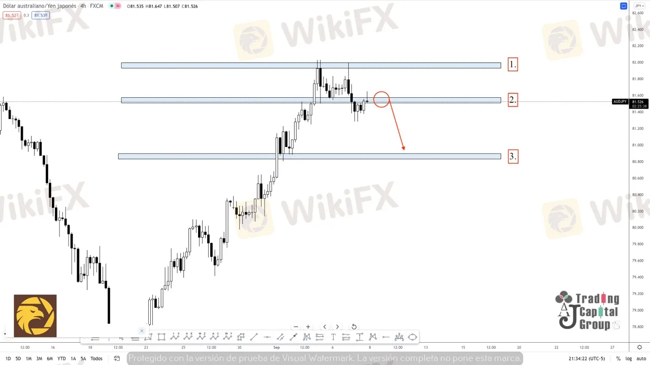 2. Teniendo en cuenta que el precio esta estableciendo una grado controlado de participación bajista, esta zona promete tener una influencia en el movimiento general del mismo. Sin embargo, de conservar su movimiento de venta, la estructura principal del gráfico deberá crear un punto de retesteo por debajo de ese nivel.