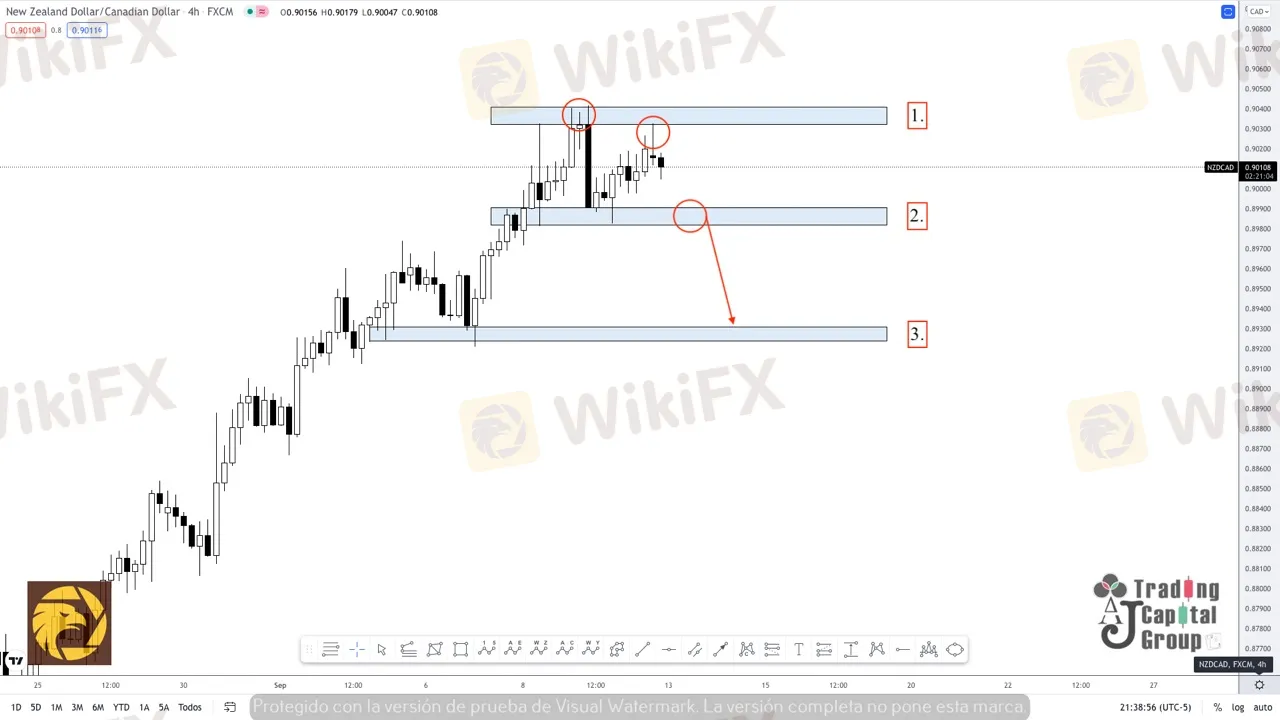 2. De consolidarse un nivel de participación bajista, el precio podría recorrer esta zona de venta hasta los 0.89200 (3) teniendo en cuenta que no hay un tráfico importante de velas que le impida al precio asegurar su movimiento de venta. Así mismo, se asegura que este nivel se establezca como una zona de cuello propia del patrón.