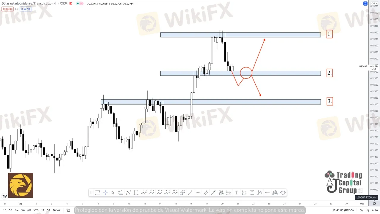 2. Por un lado de cerrar con una vela bajista por debajo de este nivel, se podría aprovecha un movimiento en venta hasta las zona (3). Por el contrario, se estaría esperando un escenario de FakeOut, en el que se debería esperar un retesteo de esta zona, para dejar que el precio vuelva dentro del rango de distribución previo y continue con su impulso alcista general retomando su tendencia general.
