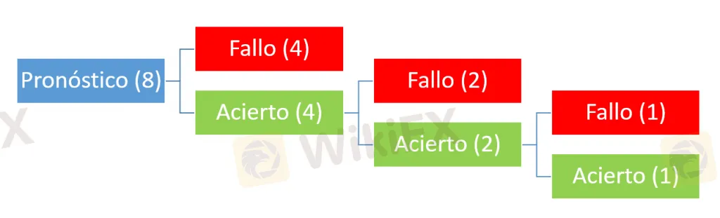Continuaría haciendo lo mismo en los 4 que queda, acertando en 2 y fallando en otros 2.