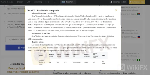 De acuerdo con las evaluaciones de más de 40 factores realizados por el equipo de control de riesgo de Wikifx, las evaluaciones cuantitativas del nivel del nivel regulador de los brokers, así como las evaluaciones de la autenticidad y el valor de la licencia del bróker llevado a cabo por el equipo legal, OctaFx carece de la aprobación que los índices de licencia, de riesgo y regulador, ya que no cumplen con todos los parámetros y requerimientos realizados por el equipo de Wikifx.