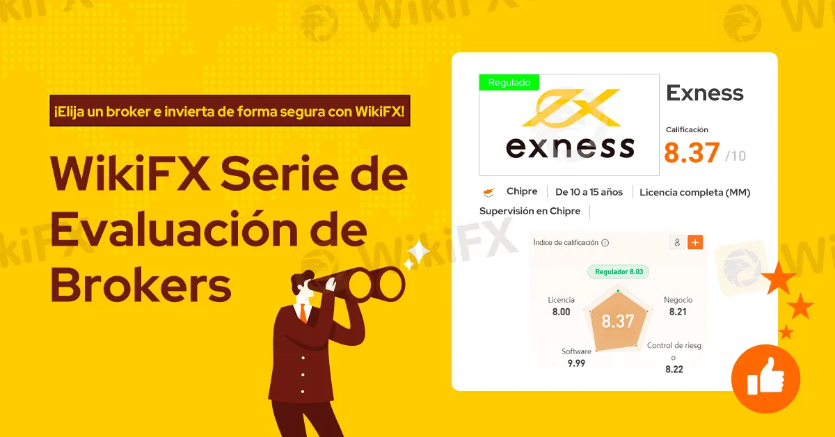 La calificación otorgada por WikiFX a Exness es de 8.37 / 10.00, una alta calificación justificada con los índices de esteh broker: Índice regulador de 8.03, Índice de control de riesgo de 8.22, Índice de licencia de 8.00, Índice de negocio de 8.21 e índice de software de 9.99, estas altas calificaciones convierten a Exness en un broker confiable.